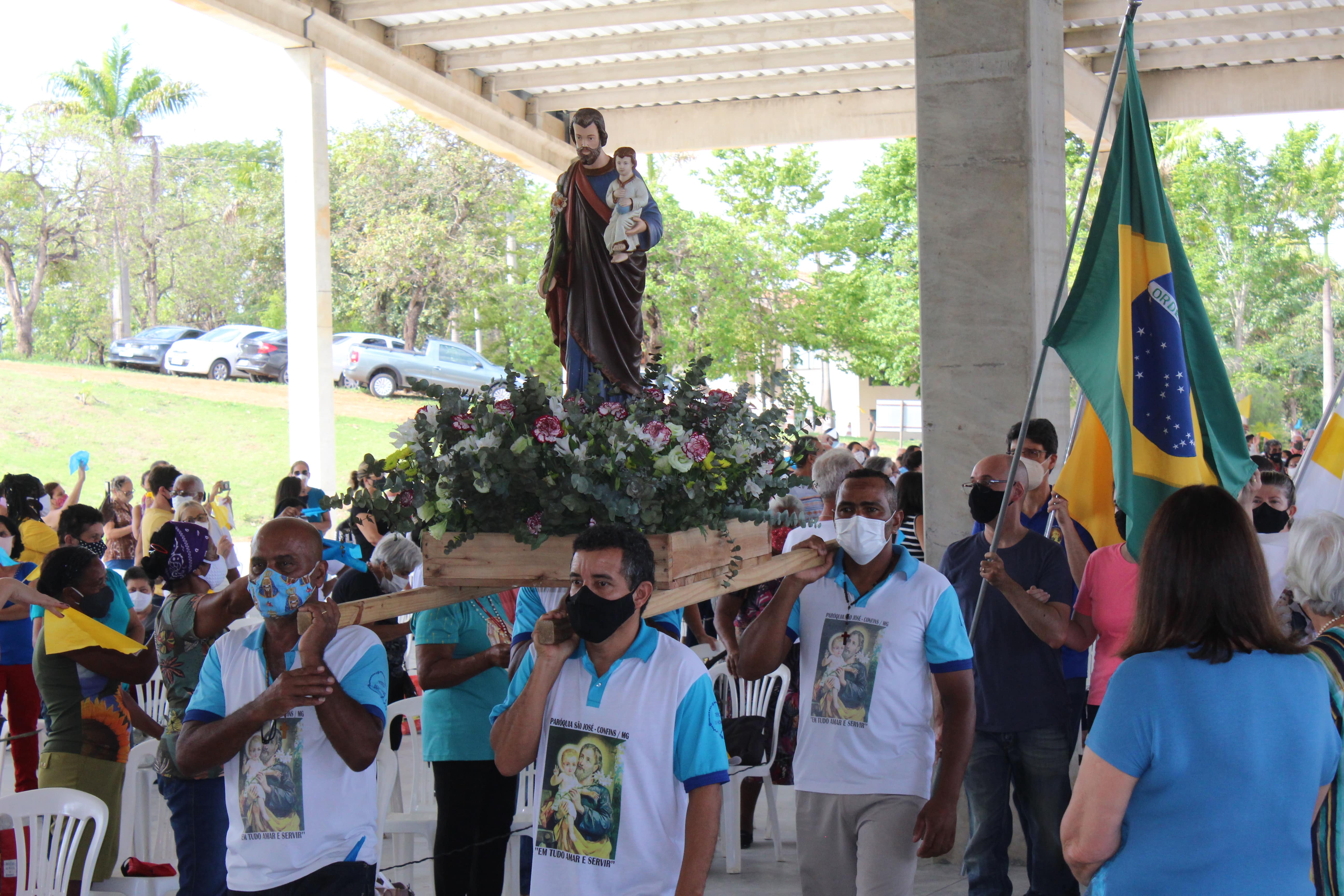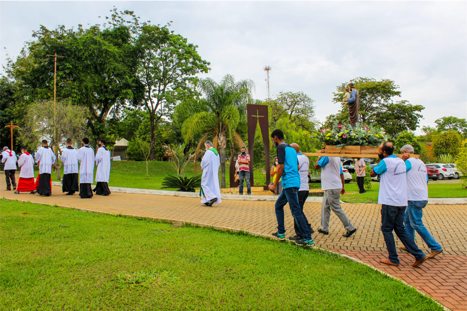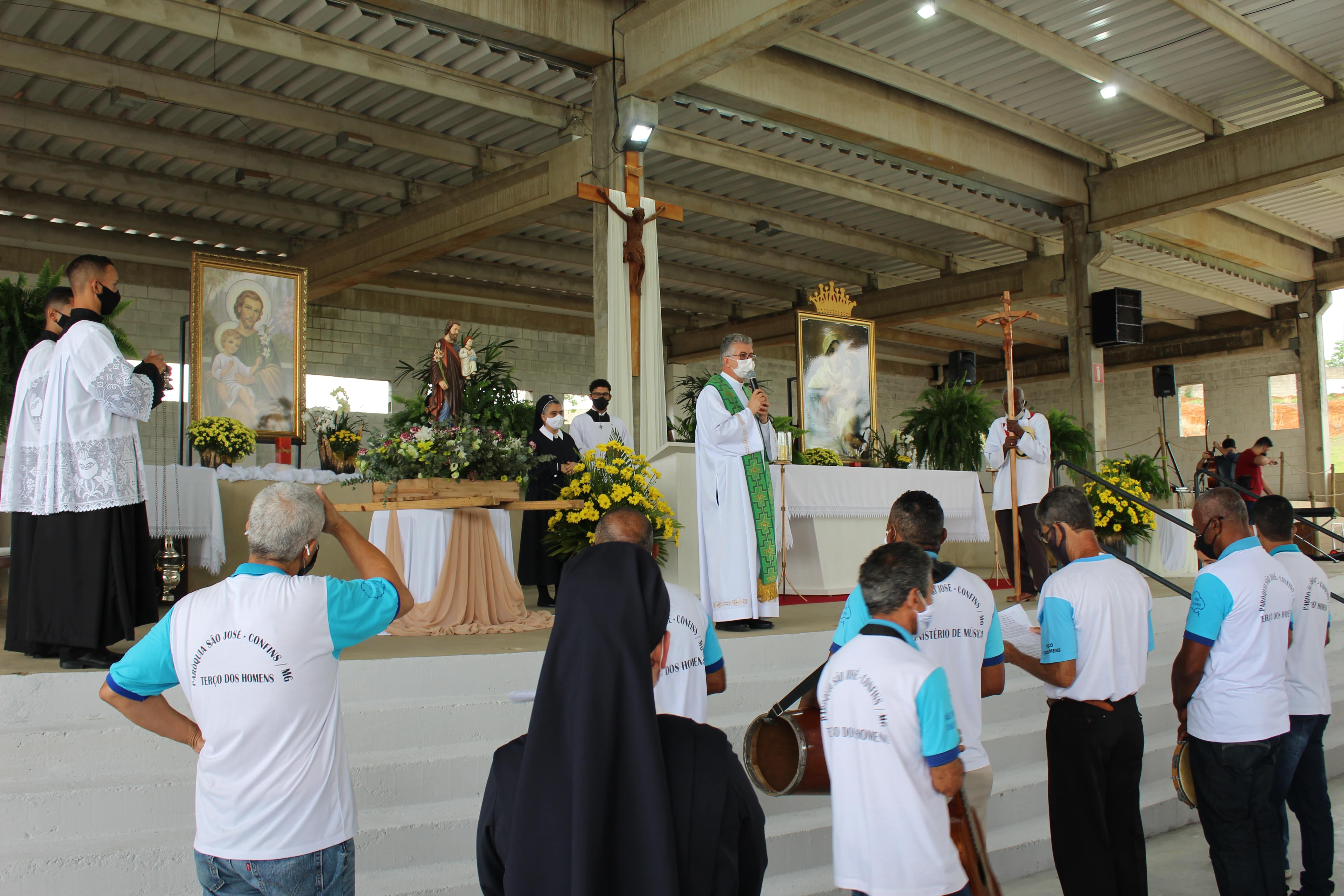 Como de costume, a Imagem de São José, o padroeiro da cidade de Confins/MG, chegou ao Santuário, acompanhada do pároco Pe. José Genildo Bezerra da Silva, o grupo do Terço dos Homens e os paroquianos, que seguiram em procissão para a tenda, com uma linda e ardorosa acolhida dos peregrinos e da equipe de canto Adriano Siqueira.
