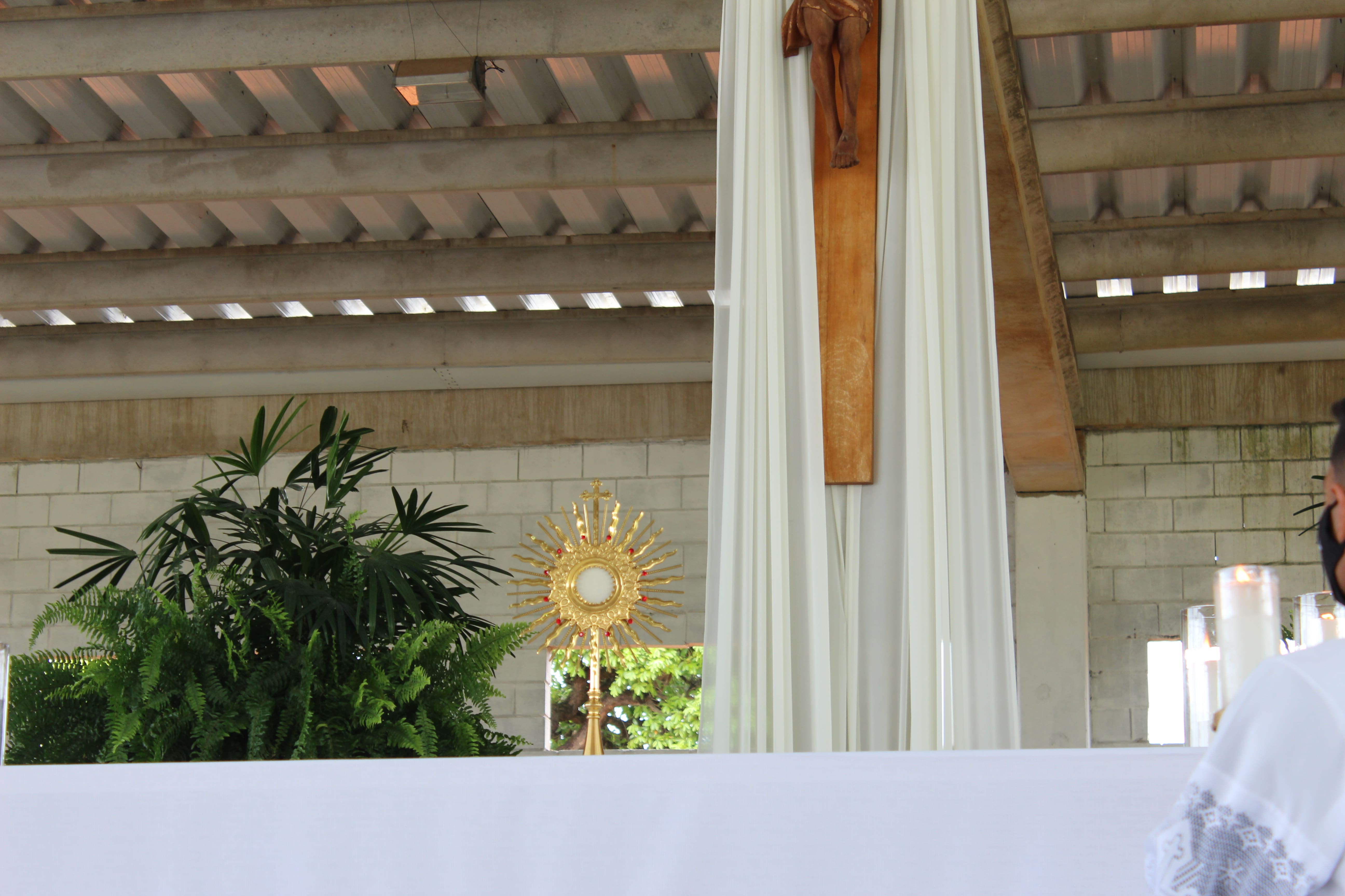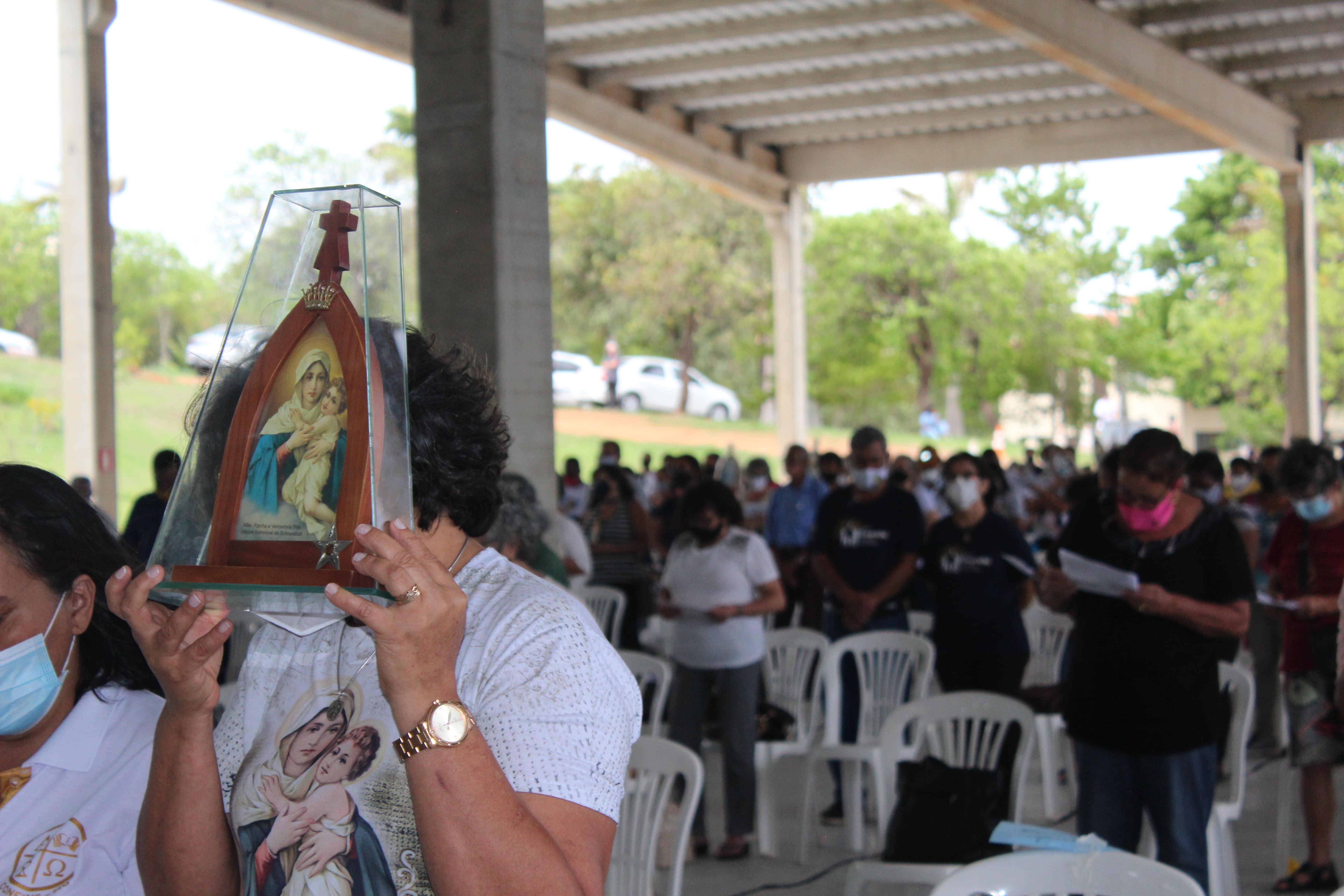 Na tenda, os fiéis puderam fazer um momento de adoração a Jesus Eucarístico. Conduzida pela Ir. M Ester Sierra, todos foram convidados a refletir sobre a graça de estar na presença dEle, depois de tanto tempo com o coração angustiado por causa da pandemia. Suplicando a Jesus, grande missionário, um coração forte e disponível a exemplo de Maria, no serviço e anúncio de seu reino.