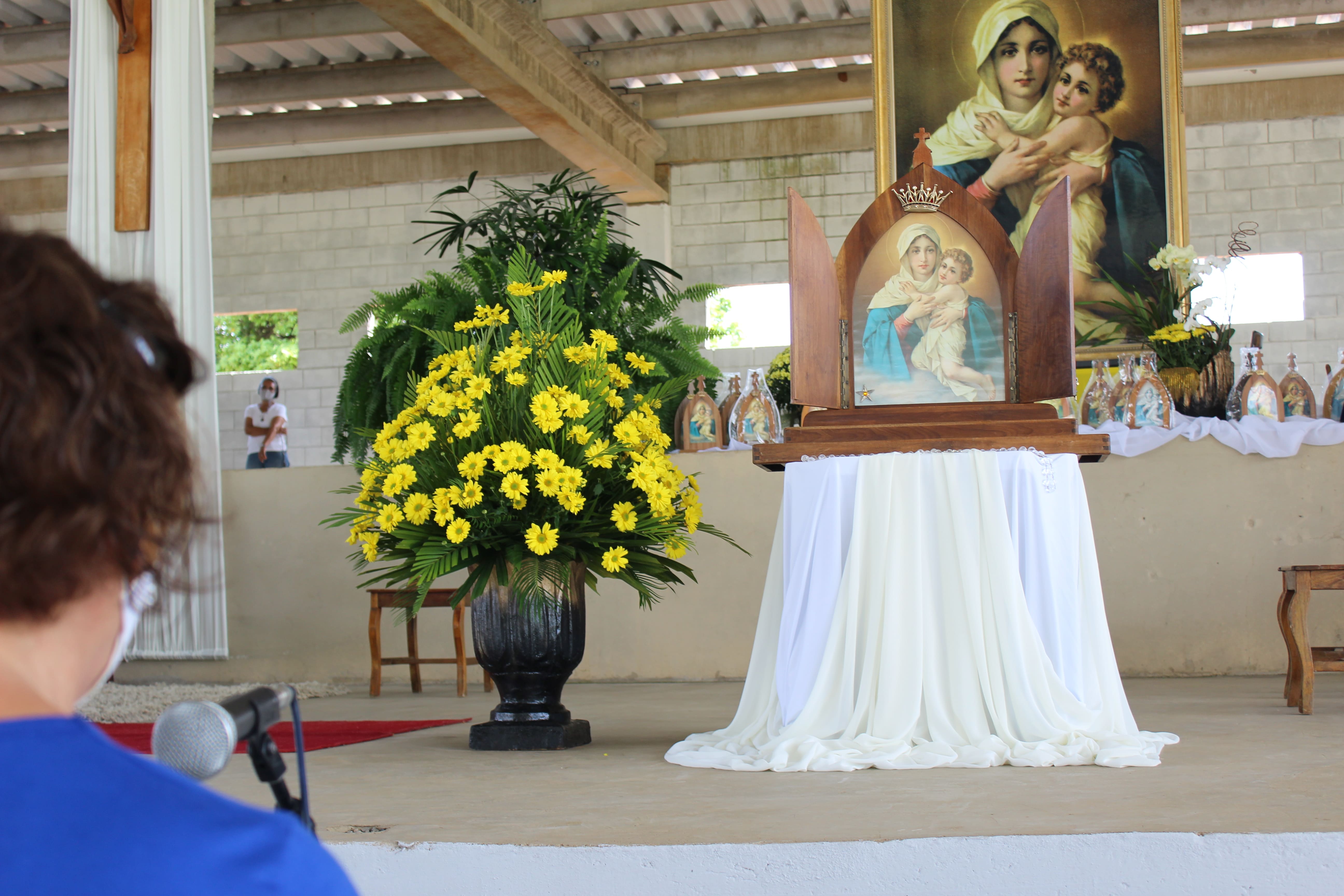 Neste momento a Ir. M Silvia Regina Formaggio, Superiora Provincial do Instituto Secular das Irmãs de Maria de Schoenstatt, agradeceu a todos que ajudaram na construção, aos responsáveis pela obra, aos que doaram, aos que rezaram, entregando tudo ao Capital de Graças.